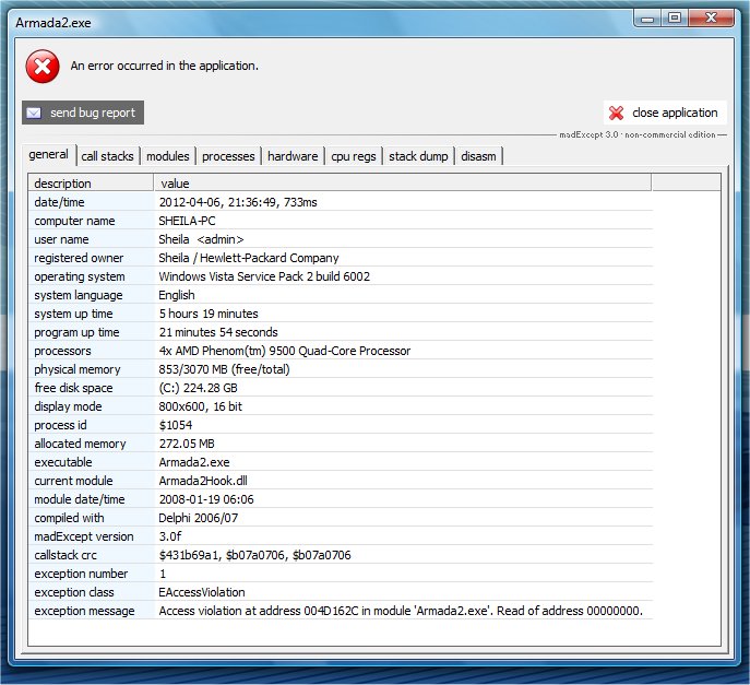 Armada 2 freezing