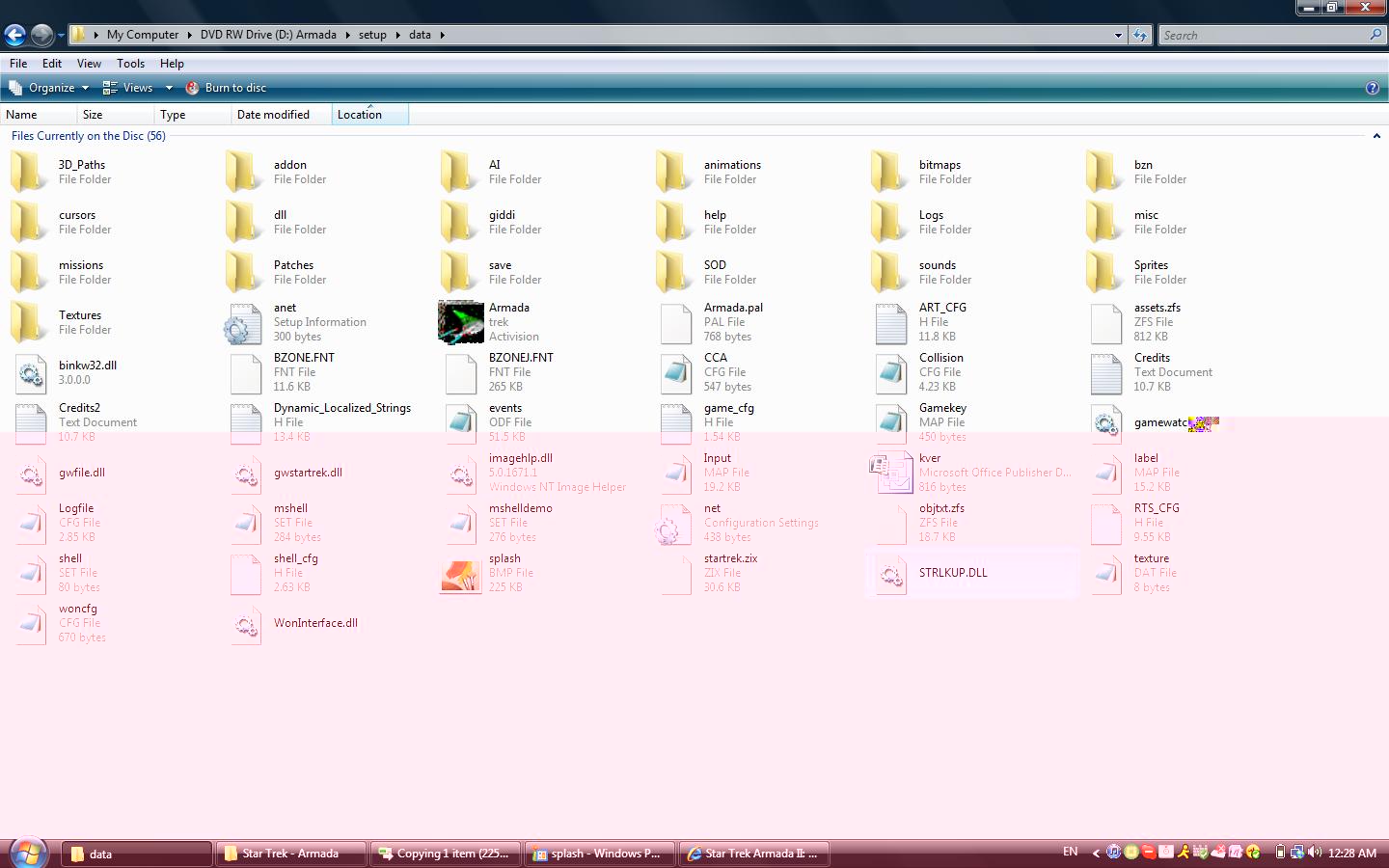 My friend Nick has been planning on letting borrow Star Trek Armada I to install on my laptop and to also play since I have only been able to play the demo for that game (which works fine on Windows Vista Home Premium 32 Bit). Well yesterday I got the game and tried to install it to my laptop, it took over 3 hours to install and then when it was done, some of the files associated with the game read as 0KB. And the game wouldn't play so I uninstalled it and reinstalled it, it still wouldn't play and still the files read as 0KB.
