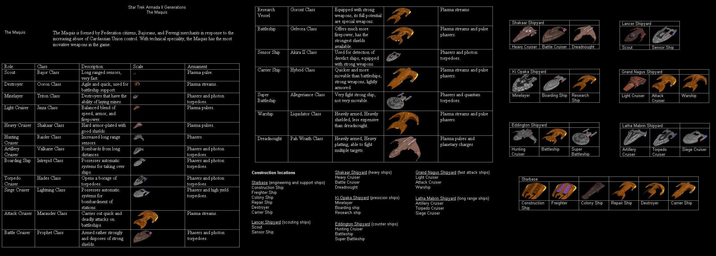 yea, I only tried programing once and it is time consuming and requires lots a work. But we can dream of a do it all program that can analyze games. These races are from 2370 ST armada: Generations: Beta Pirates, Federation, The Alliance, Romulan, and Maquis.