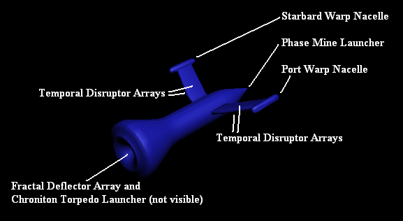 - 1 Fractal Deflector System (Can project subspace distortions to any location within weapons range) (1 Offensive Value, Used For Advanced Cloak Detect, Requires Research)